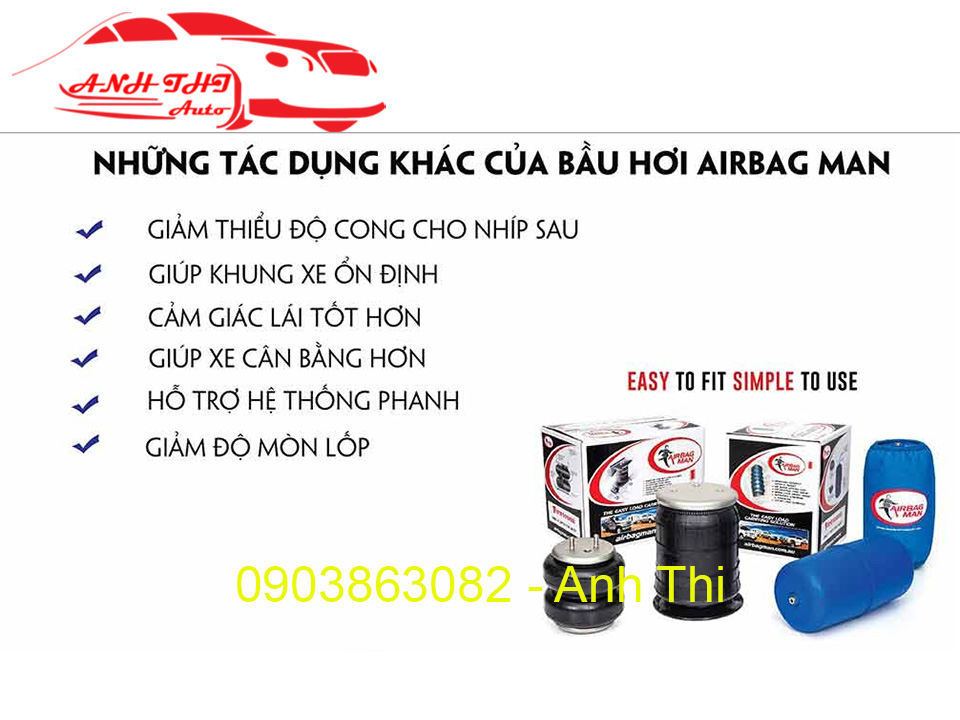 Việc lắp đặt bầu hơi sẽ giúp xe cân bằng hơn và có thể nâng hạ gầm một cách dễ dàng, ngoài ra nó còn giúp chiếc xe êm ái hơn kể cả khi không tải hàng hay kéo một vật nặng ở phía sau.