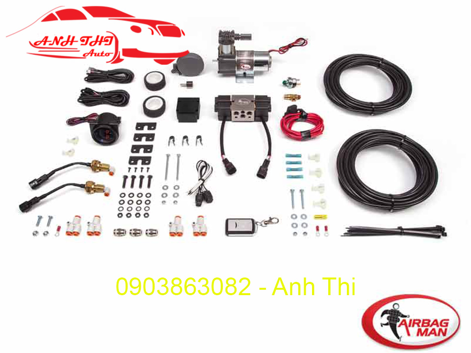 Một bộ sản phẩm Airbag Man bao gồm: Hai bầu hơi, Ống dẫn hơi, Van, Ốc vít, Sách hướng dẫn ngoài ra còn chúng tôi còn bán kèm thêm Bộ điều khiển từ xa đa năng cực kỳ tiện dụng.
