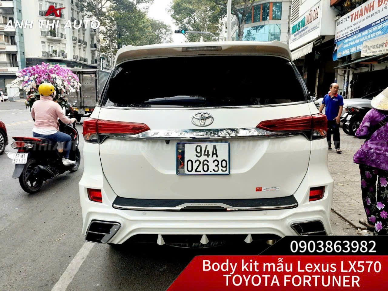 Bodykit cho xe Toyota Fortuner 2017-2020 mẫu mới gồm: cản trước, cản sau, ốp hông 2 bên, phụ kiện lắp đặt