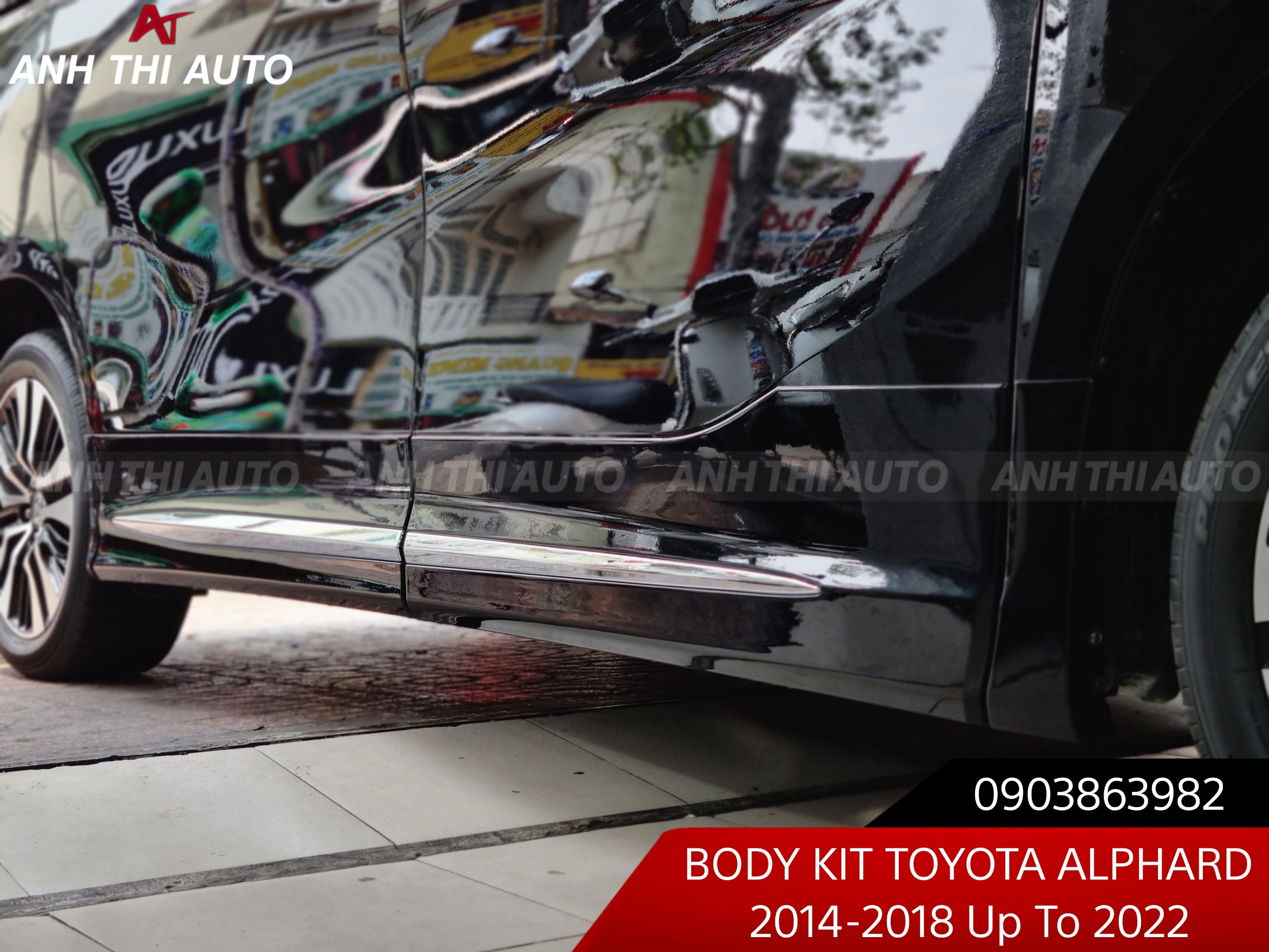 Phần hông chiếc Toyota Alphard mang phong cách thiết kế đặc trưng của những chiếc MPV cao cấp, đó là kiểu khối hộp hình vuông. Xe được trang bị gương chiếu hậu gập-chỉnh điện tích hợp đèn báo rẽ và nhớ vị trí.
