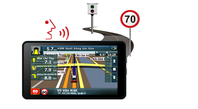 VIETMAP S1 trang bị tính năng cảnh báo tốc độ giới hạn trên từng cung đường bằng giọng nói, hỗ trợ lái xe an toàn.