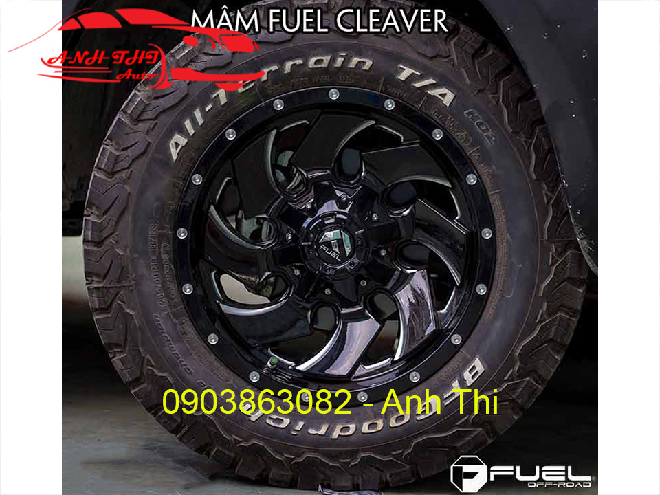 Mâm Fuel Cleaver One Piece, Màu Đen bóng (Gloss Black & Milled), Đường kính 18 inch, độ rộng mâm 9 inch, 6 lỗ (đường kính lỗ 139.7mm), Offset âm -12 là Mâm Off Road chuyên dụng dành cho các dòng xe Bán tải như Ford Ranger, Madza BT-50, Toyota Hilux được Anh Thi Auto nhập khẩu trực tiếp từ Mỹ.