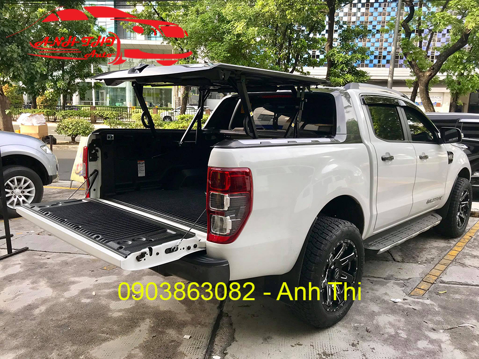 Nắp thùng Top Up cho xe bán tải Ford Ranger 2019 mở được 45 & 180 độ (có gắn khung thể thao) hàng Thái Lan nhập khẩu.