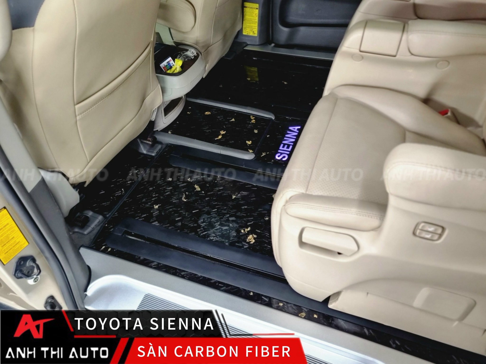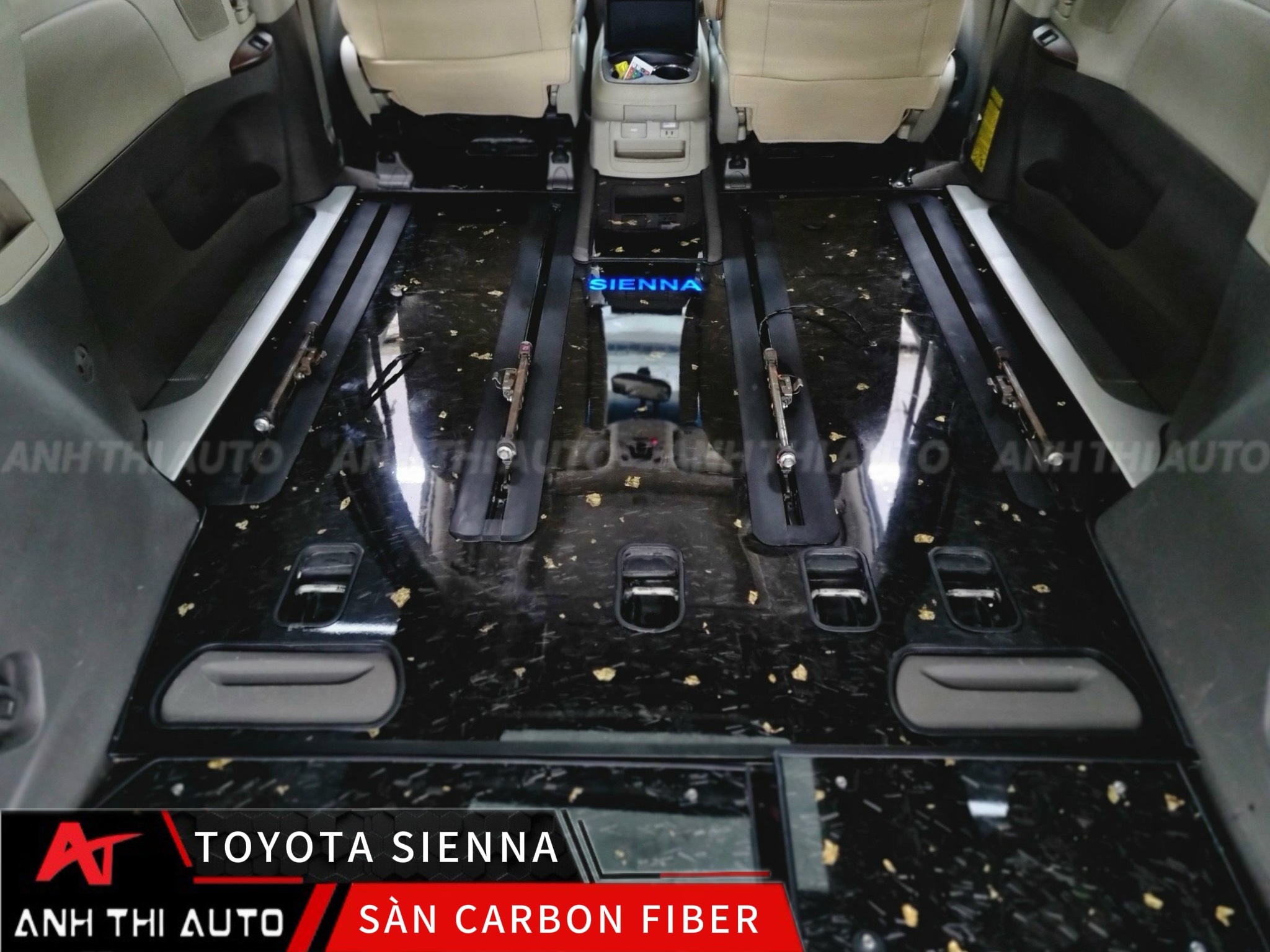 Lót sàn xe ô tô thường dùng các chất liệu như simili, nỉ, cao su, da, 5D hoặc sàn giả gỗ, vân đá. Tuy nhiên đối với dòng xe hạng sang như Toyota Sienna vẫn có một chất liệu được đánh giá là rất bền và góp phần tạo nên sự sang trọng và đẳng cấp hơn cho xe, đó chính là carbon. Đối với những chiếc xe thân lớn, sàn rộng như Toyota Sienna, sàn carbon là vật liệu hoàn hảo.